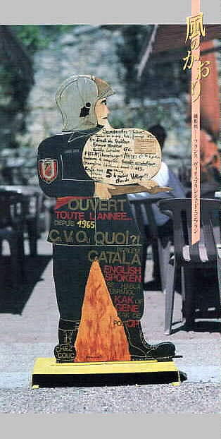 む各国語で描かれたレストランの看板