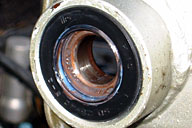 | を濡れないところに避難させた。 今のところ、夕立ちがやめば再開するつもりだが、あまり遅くなるようなら今日はここまでにして、明日の朝、続きをしようかと思案中。車検の予約は午後2時以降なので、たぶん間に合うはず。は〜ぁ、今回もまた、最後は得意の泥縄である。 しかし、今日ここまでのところ、つまり、スイングアームピボットとステアリングヘッドの組み立ては、前者が向こう5万km以上、後者が2万5000km程度ノーメンテでいけるように、ぬかりなくやった。 とくにステアリングヘッドは、下にXJ900STDのテーパーローラーベアリング (93332-00008)と互換性のあるヤマハ純正の新型ボールベアリ |