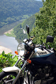 | と思っている。主張の強いマシーンを手なずけたり、主張の弱いマシーンを引っ張るのではなく、かといって、ただ乗せてもらうのでもない。気合を入れればそれに応えてくれ、しかし、ふと手綱を緩めた瞬間にはまるで自動操縦の飛行機のごとく安心で、かつ、どう操ってほしいかをそっと教えてくれるようなのが私にとって理想のバイクかもしれない。 今日は、一度も気合いを入れた走りをせず、手綱は緩めっぱなし。川 |