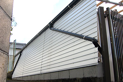 | 2008年12月27日 - 単管+波板ガレージ造り(その11) | 奥の壁張りと樋つけが終了 |