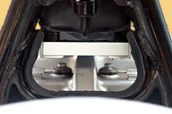 こんな場所にバッテリーを置いてしまったからには、遮熱と導風をし っかりしなければならない。 遮熱については、バッテリートレイの底とシリンダーヘッドカバー上面の間を通り、キャブレターの上を経てエアクリーナーボックス前半部に達する遮熱板を設け、導風については、遮熱板とフレームの2本のタンクレールで囲まれた四角形断面のダクトを、燃料タンクに隠れた全区間に設けようと考えている。 このダクトが計画どおりに完成すれば、バッテリーは、そのダクトの中に吊り下げられた格好となる。 だが、いくらダクトを作ったとこ |