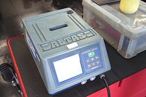 | データを見たところ、最高出力回転は9000rpmと判明。4500rpmでは測定していなかったが、89dB以上94dB以下なのは間違いなく、おそらく91か92dBであろうと思われる。 続いて、COとHCを測定してもらった。慣れた手つきで器具を扱いつつAクンは「薄いですね〜」を連発。ひょっとしてキャブセッティングのことかと心配になって尋ねると、COの測定値とのこと。現行の規制でも3.0%だから、なるほど、 余裕たっぷりの“薄さ”である。 -------------------------------- 【排ガス測定】 左マフラー@1000rpm CO:0.08%、HC:2100ppm前後 右マフラー@1000rpm CO:0.10%、HC:1800ppm前後 右マフラー@4000rpm CO:0.20%、HC:600ppm前後 -------------------------------- 残念ながら、HCのほうは、現行の1000ppmには遠く及ばず、 改正前の2000ppmに ギリギリ通るかどうかといった数値である。 このXJ900は、二輪車の排ガス規制がなかった1997 |