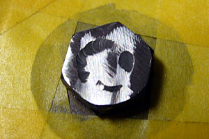 | サンダーでナット上面を削り落とした後、ヤスリとサンドペーパーで面取りと仕上げをした。 ここも、昨夜クランクケースを削 った箇所と同じく“つるピカ”にはせず、 100番のサンドペーパーをかけたときの“目”を残し、後日の接触痕発見を容易にした。 |